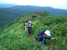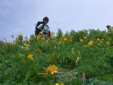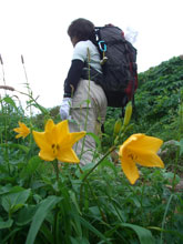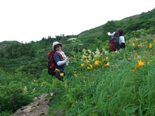 ニッコウキスゲの中を行く |