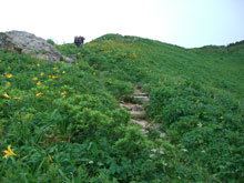 木道から山頂を望む |