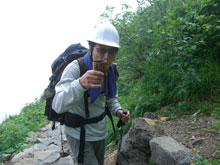 高岡4:45=市ノ瀬(6:55~7:15)=別当出合(7:30~40)=定禅道と合流(8:45~55)=3キロ地点(9:30~40)=殿ヶ池ヒュッテ(10:30~40)=馬のたて髪11:10=黒ボコ岩11:40=室堂(12:10~1320)=白山頂上(13:45~50)=室堂(14:05~15)=黒ボコ岩(14:35~40)=甚之助ヒュッテ(15:10~15)=別当出合(16:35~55)=市ノ瀬(15:05~15)