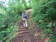急な階段から始まる。 |