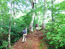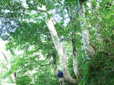 感じの良いブナの中を行く。 |