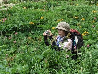 クロユリは終焉を迎えようとしていたが、他の高山植物の咲き誇る様に、大喜びでシャッターを切っておられた。何人もの知り合いにあっては話し込み、知らない若者達にまで声をかける私に、呆れておられたかどうかは分からないが、最後には、その若者達との会話を結構楽しんでおられたように思えたが、私の独り善がりかもしれない。
