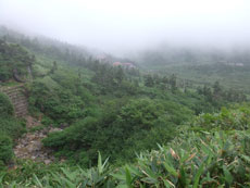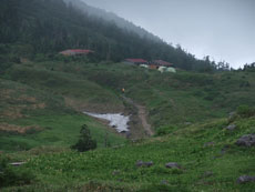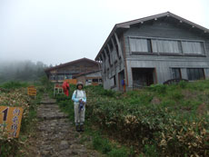 ガスの中、南竜ヶ馬場の建物が、 かすかに見える。 |