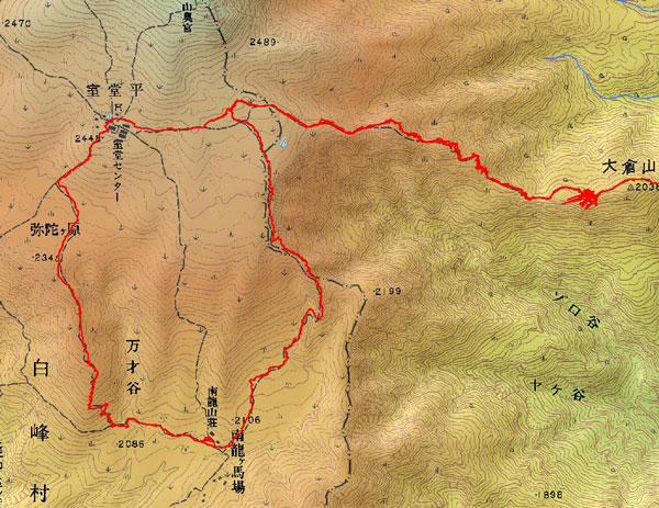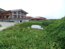 | 南竜の宿泊施設の前で。受付嬢にトン ビと展望コースの概略を教えてもらった。 |