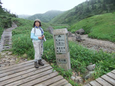 | 南竜ヶ馬場へは、0・6キロ、 砂防新道分岐へは、0・4キロの標柱 |