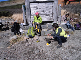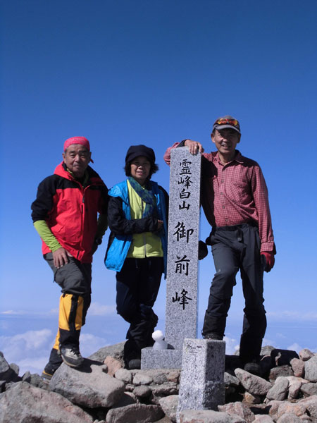登山口6:20=大倉山避難小屋8:30=室堂(10:35〜45)=白山頂上(11:25〜12:05)=室堂(12:30〜13:20)=大倉山避難小屋(14:15〜25)=登山口15:55