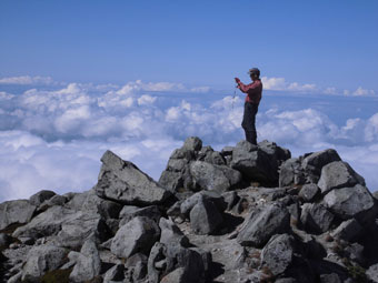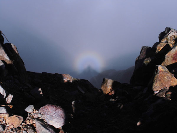 御前峰山頂で、池側にブロッケン現象が起きた。 それも、相当長い時間であったため、なかなか離れる事が出来なかった。 |