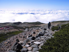 賽の河原に出るまでの急登では、いつもの通り喘ぎ喘ぎとなった「山ノ神」であったが、山頂へ目指す時間がたっぷりとあった。登り甲斐があったという表現がぴったりであった山頂では、きれいな雲海と、長く続いたブロッケン現象に歓声をあげてしまった。