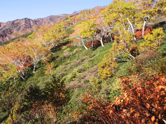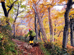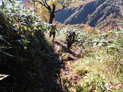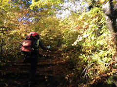 高所では雪ある事も考え、僅かでも気温によっては、スリップを防止する対策を講じなければと、荷は、ちょっぴり嵩張ったり重くなったりしたが致し方ない。そして、なんぼ何でも大倉山手前までの紅葉期待をしていたが、何だか様子が変だった。新雪も、隅っこに、ちょっぴり残っている程度で拍子抜けではあったが、ピーカンのご褒美をもってすれば、何も言うことはなかった。