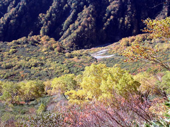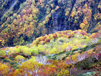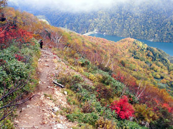 室堂に戻って昼食としたが、ビールのない「山ノ神」の表情が、いつもと違うような気もしたが、平瀬道の下りでは、素晴らしい紅葉を目の当たりにした事もあってか、結構足早に駆けていったのである。