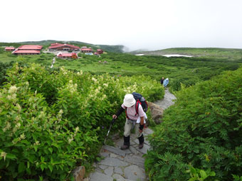 室堂で、生ビールを所望する「山ノ神」に山頂へ誘ってみた。あまり山頂へは行きたがらないのであるが、「ゆっくりでいいから・・」 「時間は、たっぷりあるから・・」 の言葉に納得したのか、久し振りに山頂を目指す事になった。