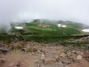 | 山頂から室堂を見下ろしています。 |