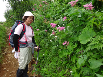 シモツケソウに立ち止まる「山ノ神」 |