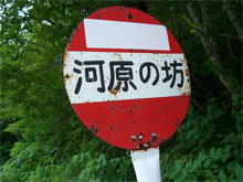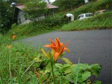 | 河原の坊のバス停。 | 駐車場に、カンゾウが・・・。 | 山頂へ2・6キロ、小田越へ2キロ、岳へ6・4キロ。 |
