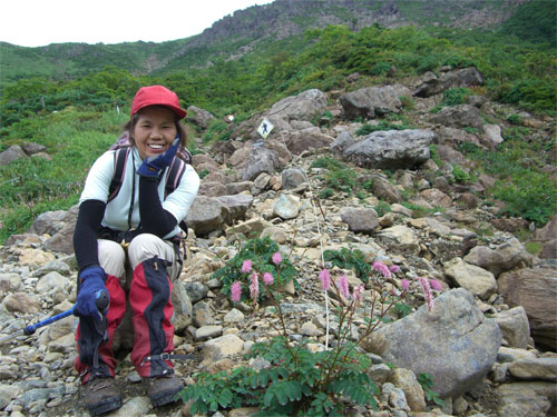 | 山頂に向かうに連れて岩が大きくなる。 | 「わ~っ、私、登れるかしら」 |