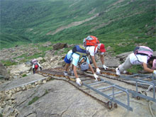 | 何だか楽しくなる。 | 迂回路もあったが、岩と鎖に飛び付いた。 |