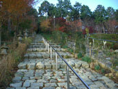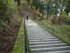 a.m.7:57 寺院横の急階段を登 れば、いっぺんに高度が上がる。 |
