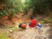 a.m.8:39 登山道の真ん中で腰を降ろす。 |