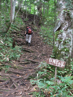 | 西登山道口 ゆっくり登って2時間半の標識有り。 |