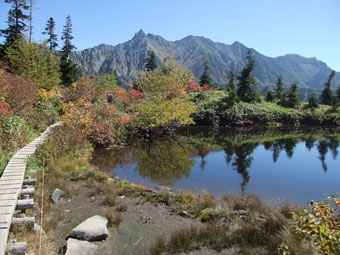 | 鏡池と槍ヶ岳は、絶景ポイント。 |