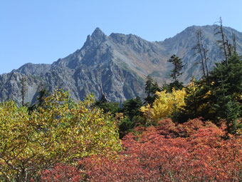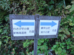 奥丸山との分岐点で、小池新道の入口でも あり、鏡平までのコースタイムは3時間半。 |