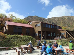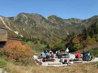 | 「山ノ神」ジョッキ片手にご機嫌! | 鏡平小屋での賑わい。 | もう一度鏡池へ・・・ |