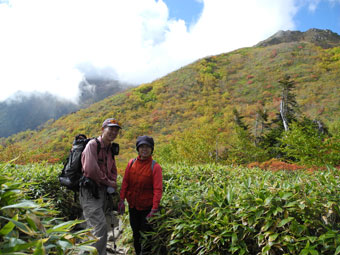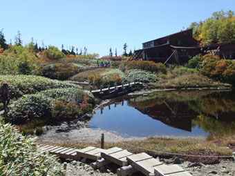 | イタドリヶ原で一服。 | イタドリヶ原 ←ワサビ平1:30 1:45鏡平→ |