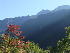 a.m.7:25 だんだんと山が明るくなり、紅葉 が目に飛び込んで来るようになりました。 |