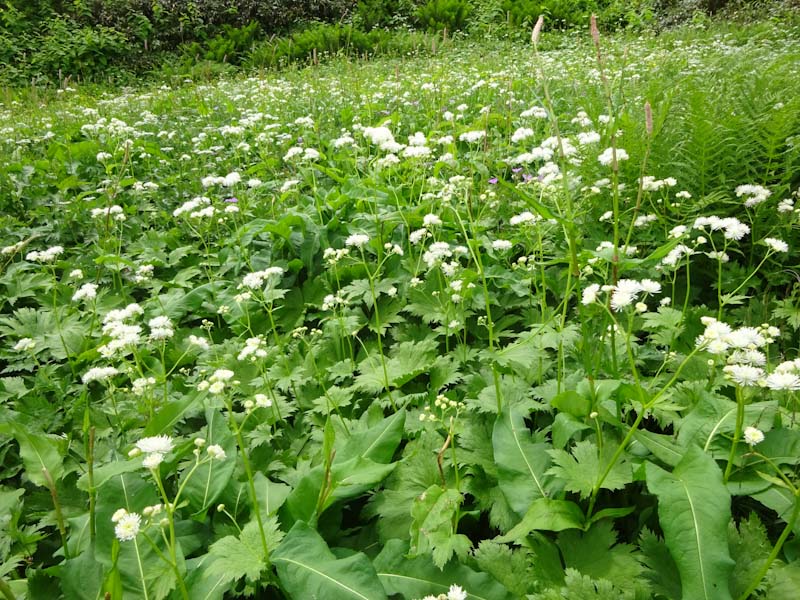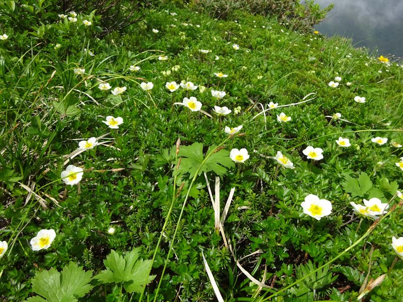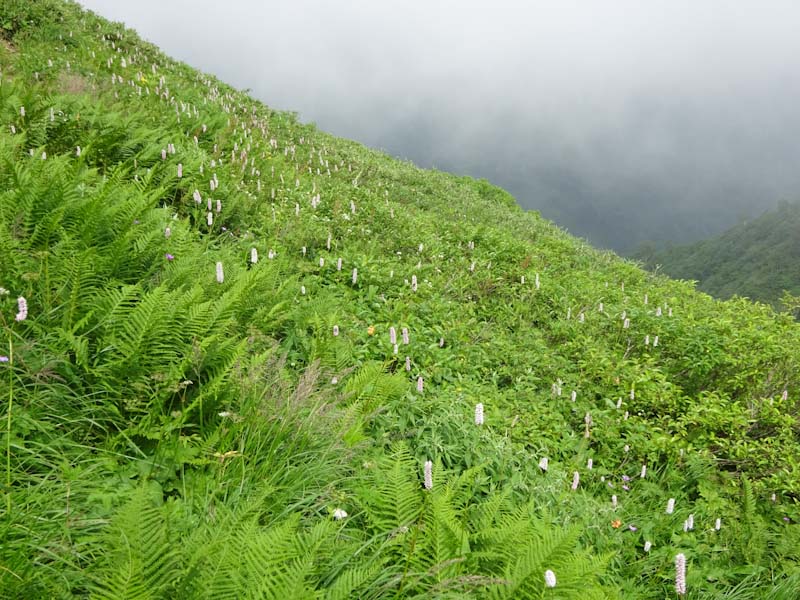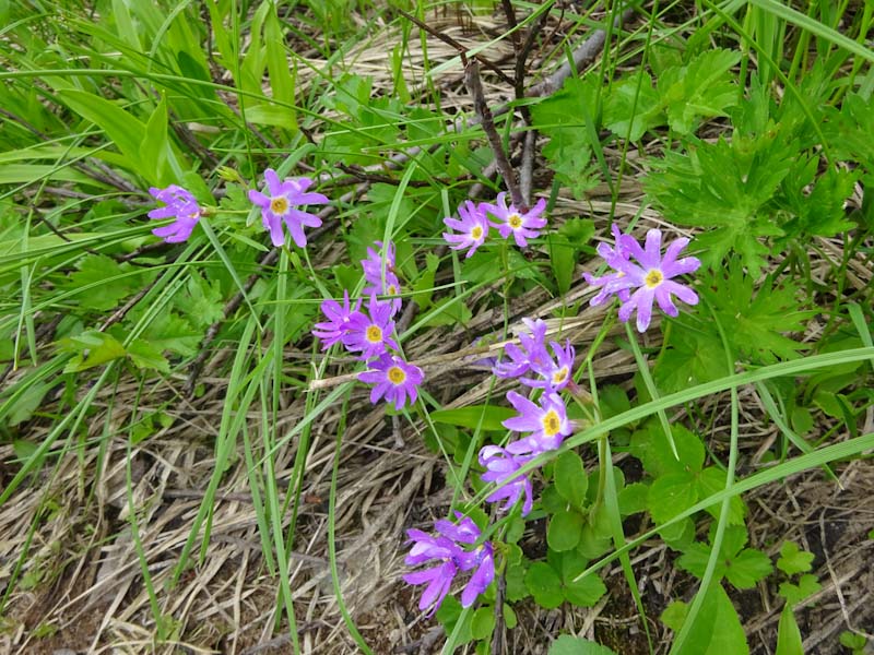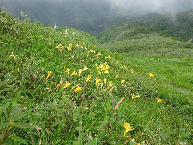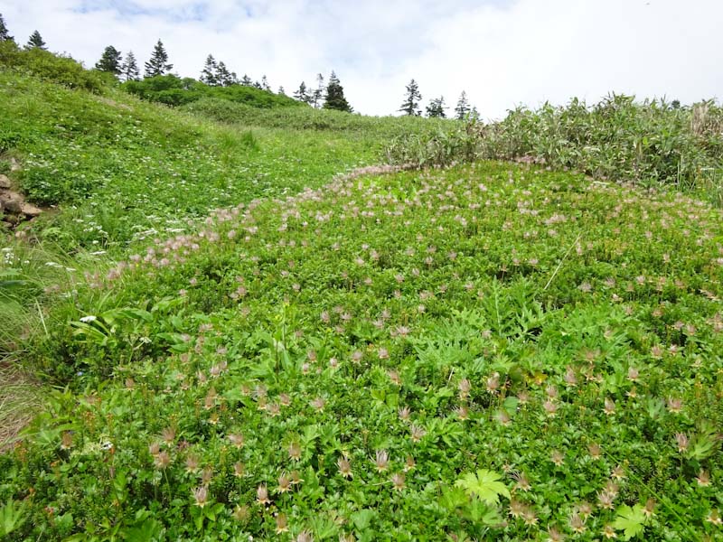 心配していたハクサンコザクラの群落があった。シナノキンバイもある。ニッコウキスゲも・・・ 本来ならゆっくり歩いて、ゆっくり食事もしたかった。過去には、この山域でも、やはり虫で居たたまれない事もあった。今日みたいな日にと思わずにはおれなかった。