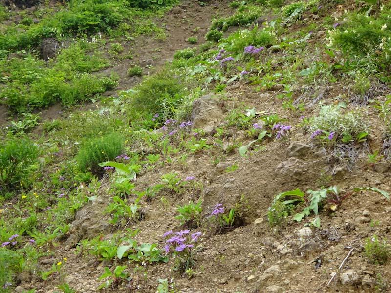 天狗原山を降れば、すぐにお花の楽園となった。今年は全く残雪がなかったが、それでも気持ちの良いものであった。(虫もいなかった。) 速く歩かなければならないし写真も撮りたい。そんな事を思いながら、立ち止まっては歩き、歩いては止まってシャッターを切っていた。