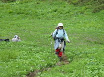 下り始めて、雨も小降りになった頃、雷鳥が数羽現れた。事前に金山で雷鳥がいるとの藤井女史の情報は、私には信じられなかったのであるが、目の当たりにしてビックリしてしまった。頚城の山にも雷鳥がいるのだ・・・・・・。