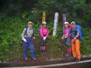 高岡3:30=滑川IC(4:05~10)=糸魚川IC4:50=登山口(5:50~6:05)=水場(7:05~15)=崩壊地(8:25~40)=天狗原山(9:40~10:05)=金山頂上(11:15~12:30)=天狗原山13:20=崩壊地(14:25~35)=水場(15:30~40)=登山口(16:20~35)=露天風呂・食事(16:45~17:55)=滑川IC(20:15~20)=高岡21:10
