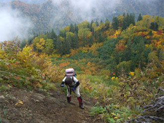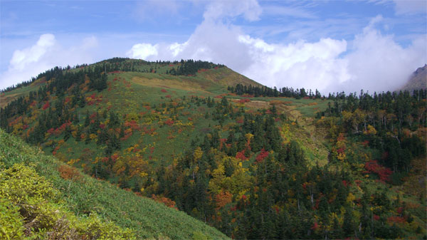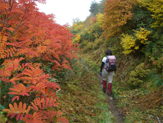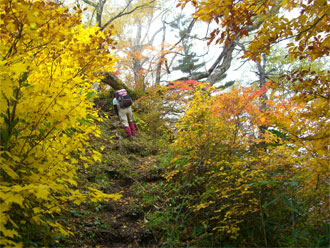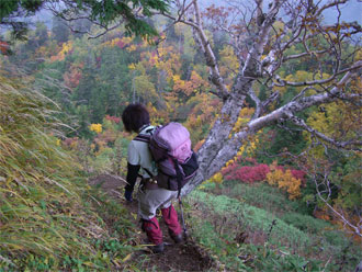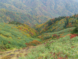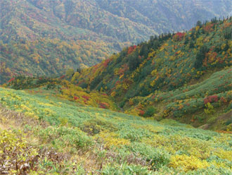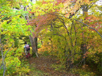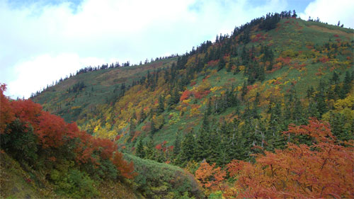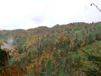 | 天狗原山から金山に向かう時、あまりの紅葉の凄さに驚いた(右は、焼山) |