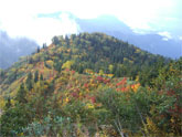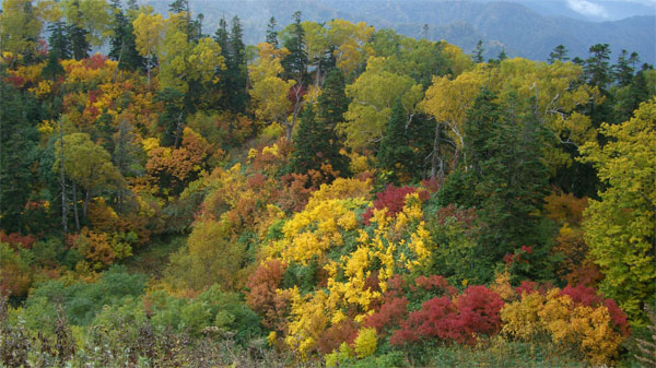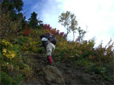 小谷温泉から笹ヶ峰への林道に、通行の支障がなく、午前6時過ぎには、登山口を発つ事が出来た。「降らなければいい。」 のつもりであったが、高度を上げるに連れて、黄色そして赤色が、目を見張らせ、時には、空の青までも見え隠れしていったのである。