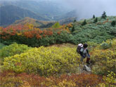 黄色のトンネルに魅せられ、崩壊地(ガレ場)辺りから、赤が混じった。天狗原山から、チングルマが主役になり、時折、焼山・火打山が顔を出し、その斜面の紅葉が素晴らしかった。それに負けじと、天狗原山から金山へは、「わっ~、」 の声の出しっぱなしであった。過去4度は、いずれも高山植物が目的の夏だっただけに、今回は、錦繍の絨毯に酔う 「錦秋」 そのものであった。