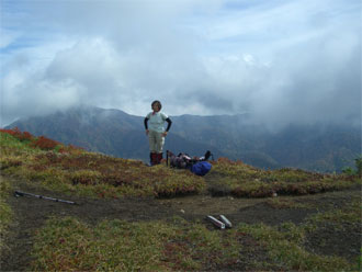 山頂に達した頃から、ガスに覆われてしまったが、山頂滞在が1時間半近く、二人で撮った画像が、合わせて600枚、ケンカもせず、そして、明るい内に下山し、露天風呂にまで入れるという何もかも○であった。