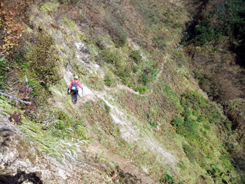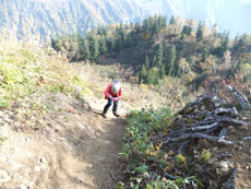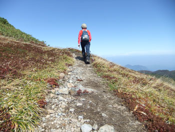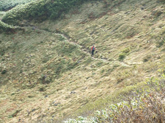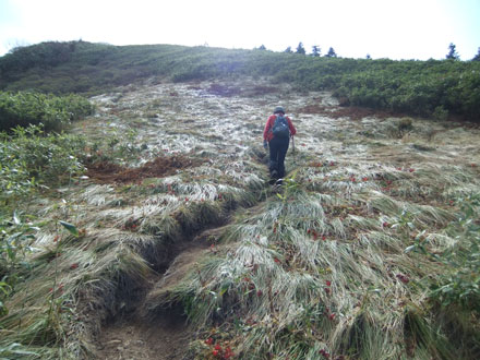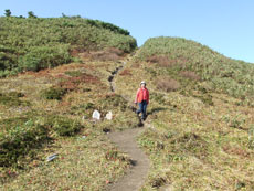 | 夏には、ハクサンコザクラが咲き誇る斜面を登って天狗原山へ・・・ |