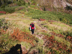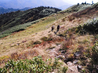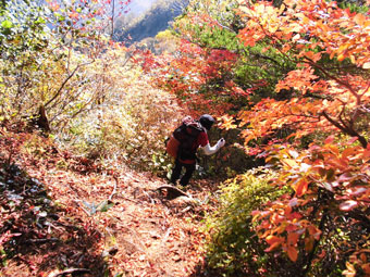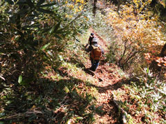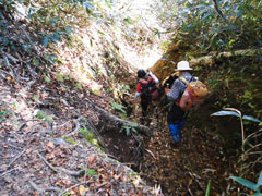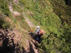 | 「山ノ神」の苦手な崩壊地。ロープを頼りに・・・・ |