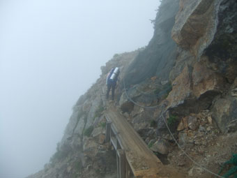 〜〜 差程危険な所ではないのですが、此処を過ぎれば、後5分ほどで唐松山荘です。 〜〜