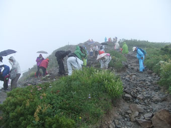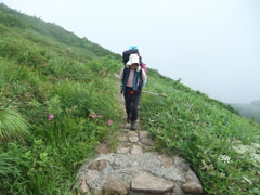 (270×2+100×2)+(270×2+100×2)=1,480円を稼ぐのに1時間掛かったが、1,850mに達したのであるから気分は良かった。八方山荘からは、トレッキングコースである木道を歩いた。いろいろと高山植物が咲いているが、大勢のハイカーの為混雑していた。特別早く行かなければならない事もなく、その流れに従った。