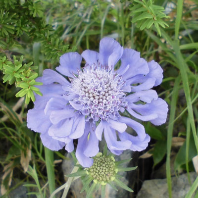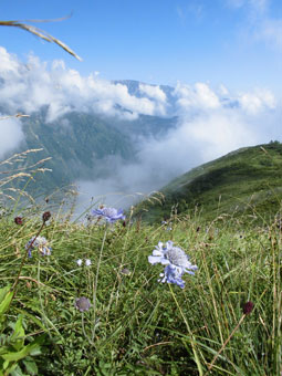 | 八方池までの登山者が結構おいでる。 | マツムシソウと雲海。 |