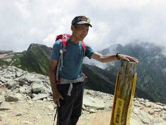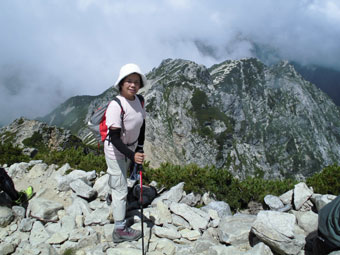 | 丸山ケルン | 不帰ノ嶮をバックに、丸山ケルンにて |