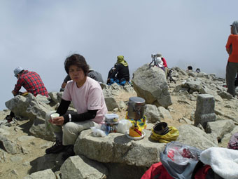 | 山頂で寛ぐ「山ノ神」 | これまた、不帰ノ嶮をバックに山頂で・・ |