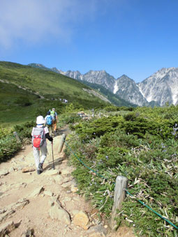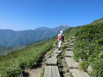 | 鹿島槍ヶ岳や五竜岳が見えて来る。 | 不帰ノ嶮が見えて来る。 |
