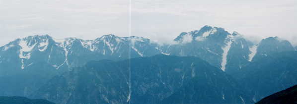 鹿島槍ヶ岳をワイドに(左が南峰、右が北峰の双耳峰)