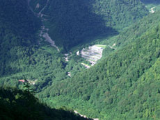 扇沢のターミナルと駐車場が見えて来る |