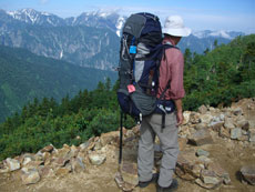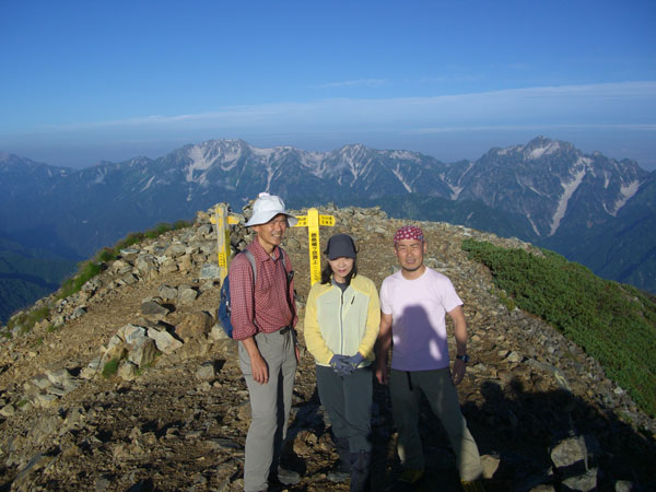 | 心配したお天気であったが、晴天に恵まれた。(鹿島槍ヶ岳山頂にて) |