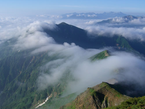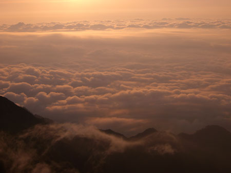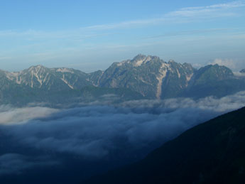 | 布引山。奥は爺ヶ岳。 | 雲海に見取れて・・ |