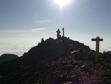 | 逆光の山頂 | 北峰にも多くの人達が・・ | 鹿島槍の山頂で・・ |