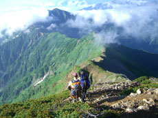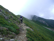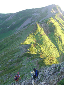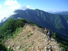 | a.m.6:35 山頂を後に・・・・ | 広がる展望を楽しみながら・・ | 稜線漫歩とは、このような事・・ |